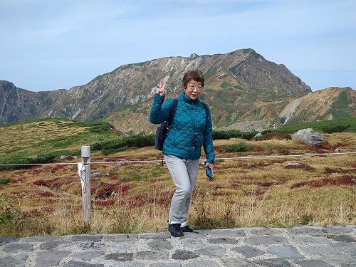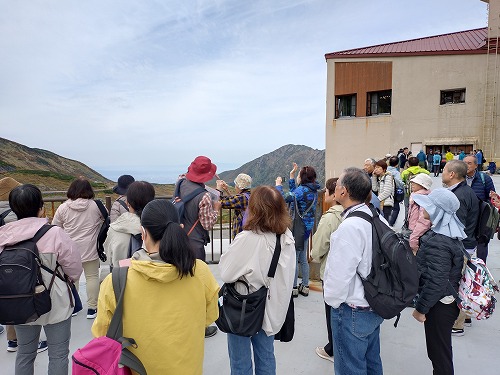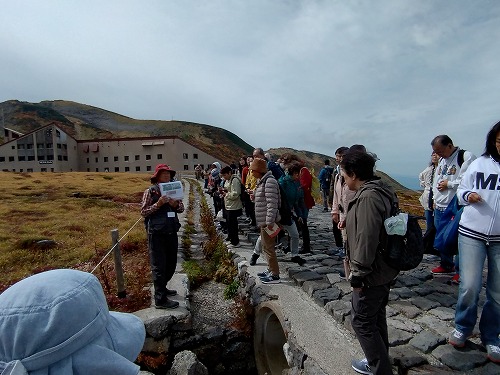 室堂に到着 ガイドさんが山の名前や植物など説明してくれました。 |