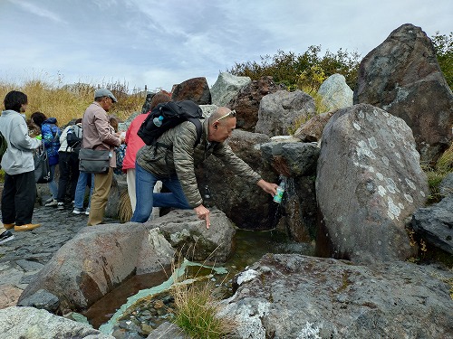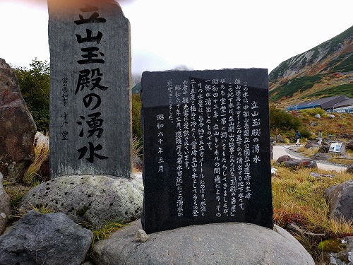 | 立山玉殿の湧き水です。 ツアーガイドさんに教えてもらったのですが、立山には3つの有名な湧き水があり、飲み水はそこで調達できるので空のペットボトル必須! 写真はないのですが、ケーブルカーの立山駅にもありました。チャんと給水済みです。 |