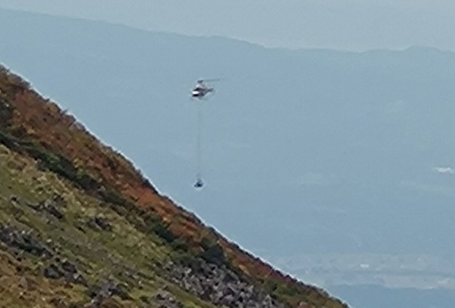 ヘリコプターが頻繁に必要物資を搬送 |
