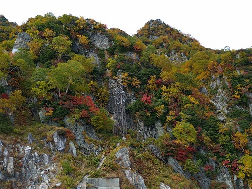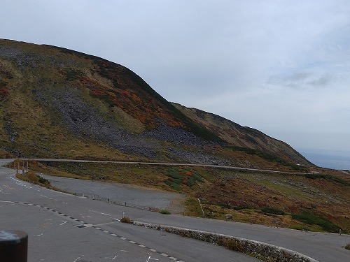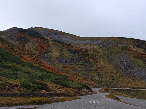 標高2,000mを超えた辺りから森林限界となり、背の低い植物は紅葉で色づいています。 |
