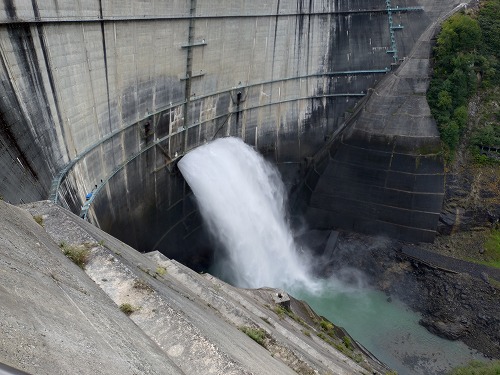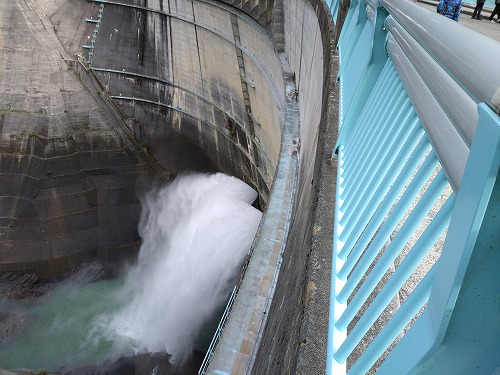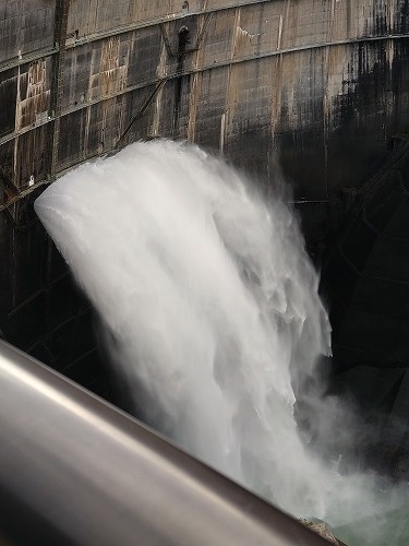ダムの放流は今年は6月26日から10月15日まで行われています。 毎秒10t以上の水量です。 この写真↓を撮る時は、スマホが手から滑り落ちる心配でビビりました! |