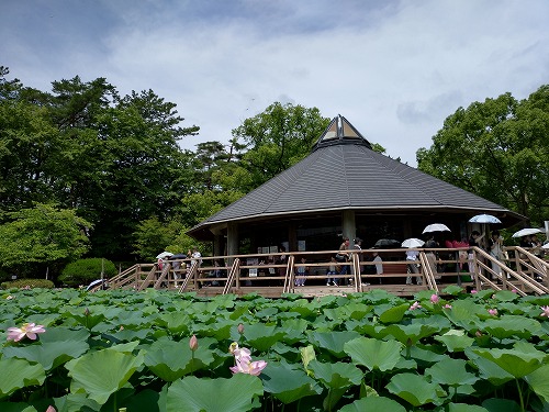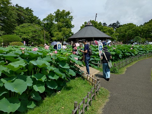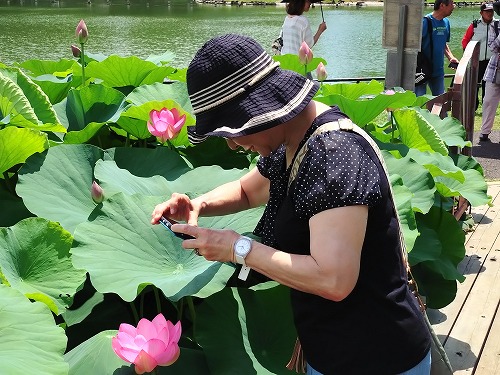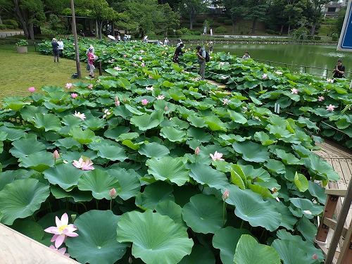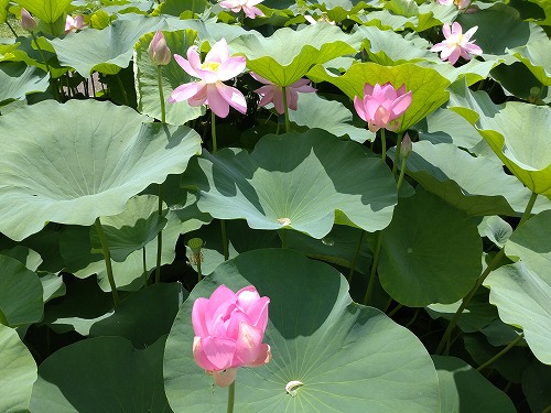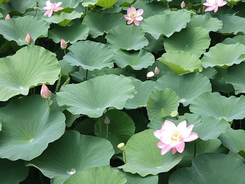これまでより、少し蓮の花が少ないような気がしました。 |