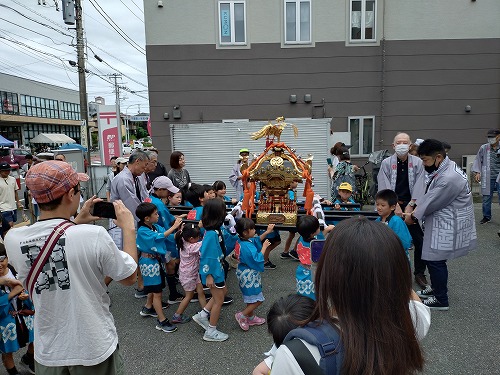 | 今年も子守神社の例大祭が始まりました。 幕張5丁目会館の前では大人神輿に先立って子ども神輿で盛り上がりました! |