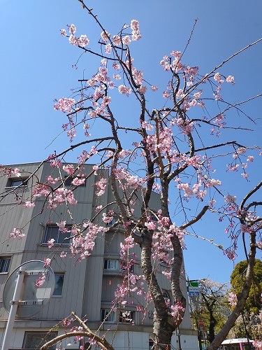 千鳥ヶ淵緑道に入ります。 角にちょっと変った桜が咲いていました。↓ |