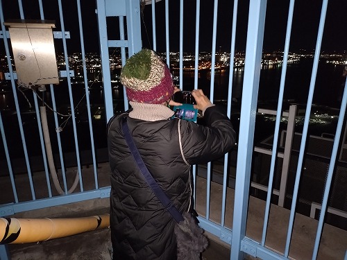 最後にやって来たのはすでに営業時間は終了している千葉ポートタワー 今日は特別に屋上まで階段を使って上がることが出来ました。 |