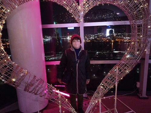 何十年ぶりのポートタワーですが、屋上は初めて 風が強ければ屋上は中止となる筈でした。 |