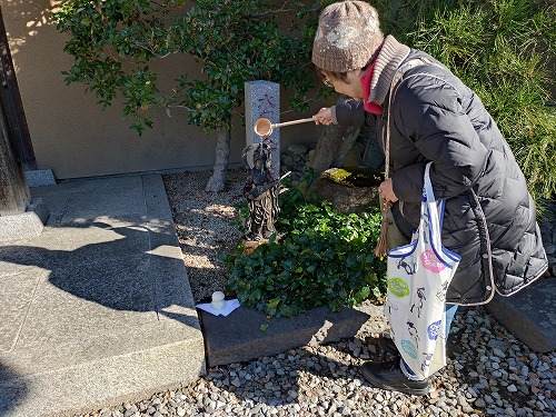 境内に水かけ地蔵があったので水を掛けました。 |
