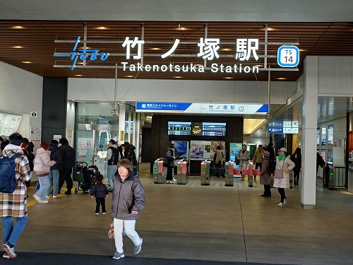 今年の七福神めぐりは初めての伊興七福神です。 東武線の赳の竹ノ塚駅から歩きます。幕張からだいたい1時間聞いたことのない駅名がたくさんありました。西口方面へ |